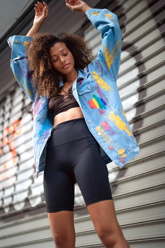 The Pride jacket symbolizes inclusivity, diversity, and visibility. With our Design we are highlighting our love and support for the LGBTQ+ comunities. This is not just a garment , it represents the ongoing fight for equality and acceptance.